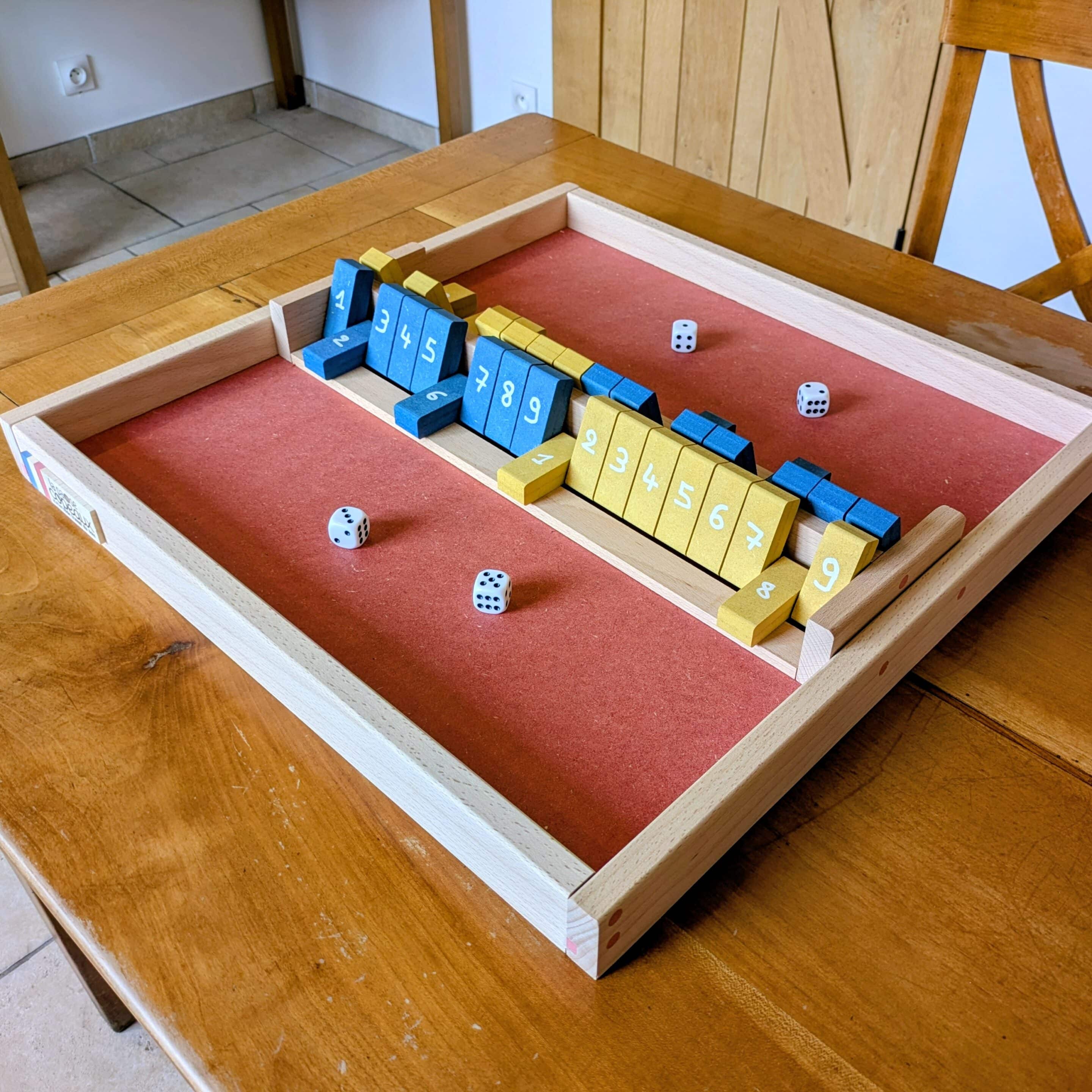 Le Jeu « Fermez la boite » (en anglais « Shut the box », appelé aussi « Jeu de Trac »), est un jeu de dés rapide et convivial qui se joue à 2, 3 ou 4 personnes.
