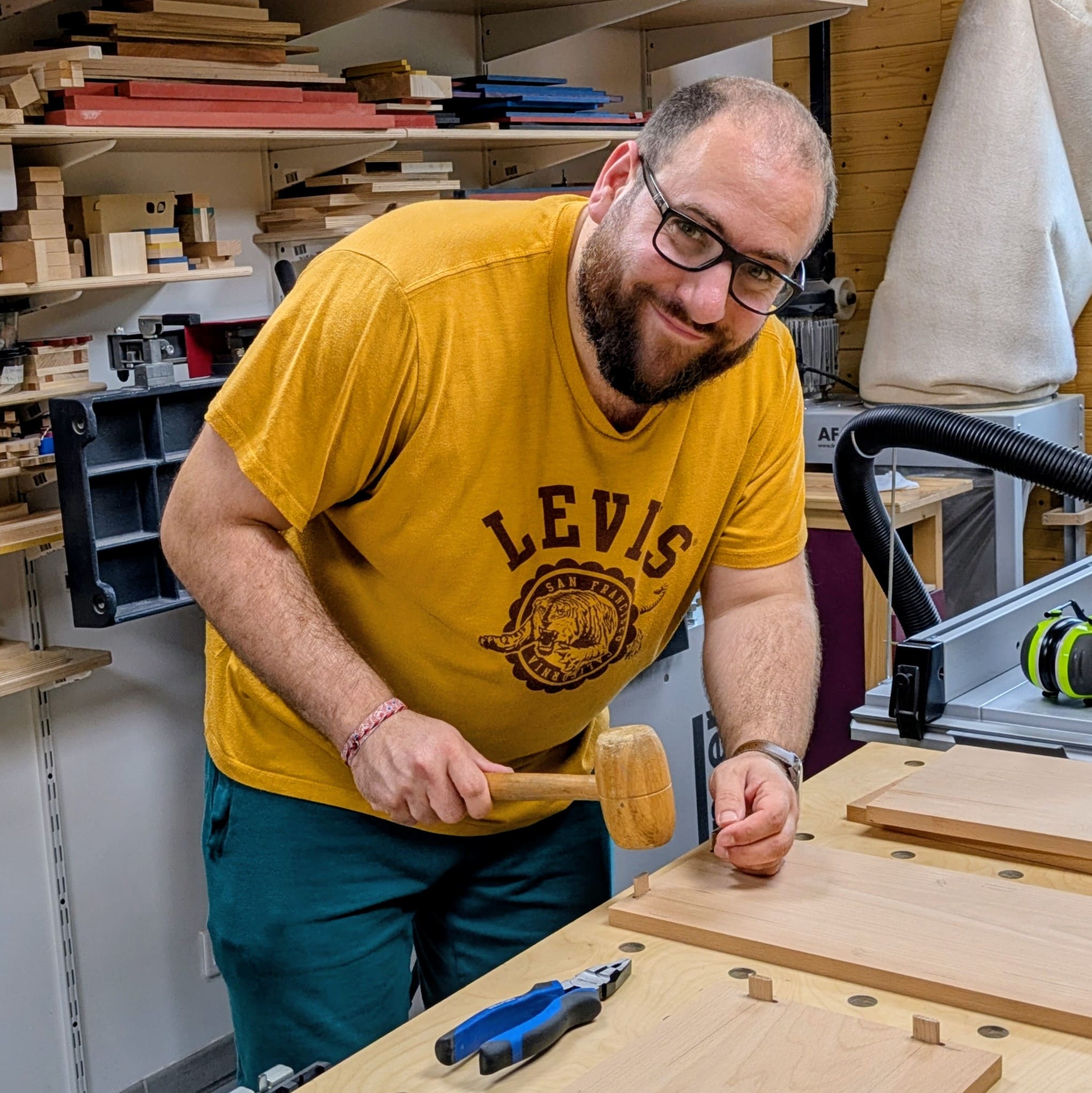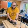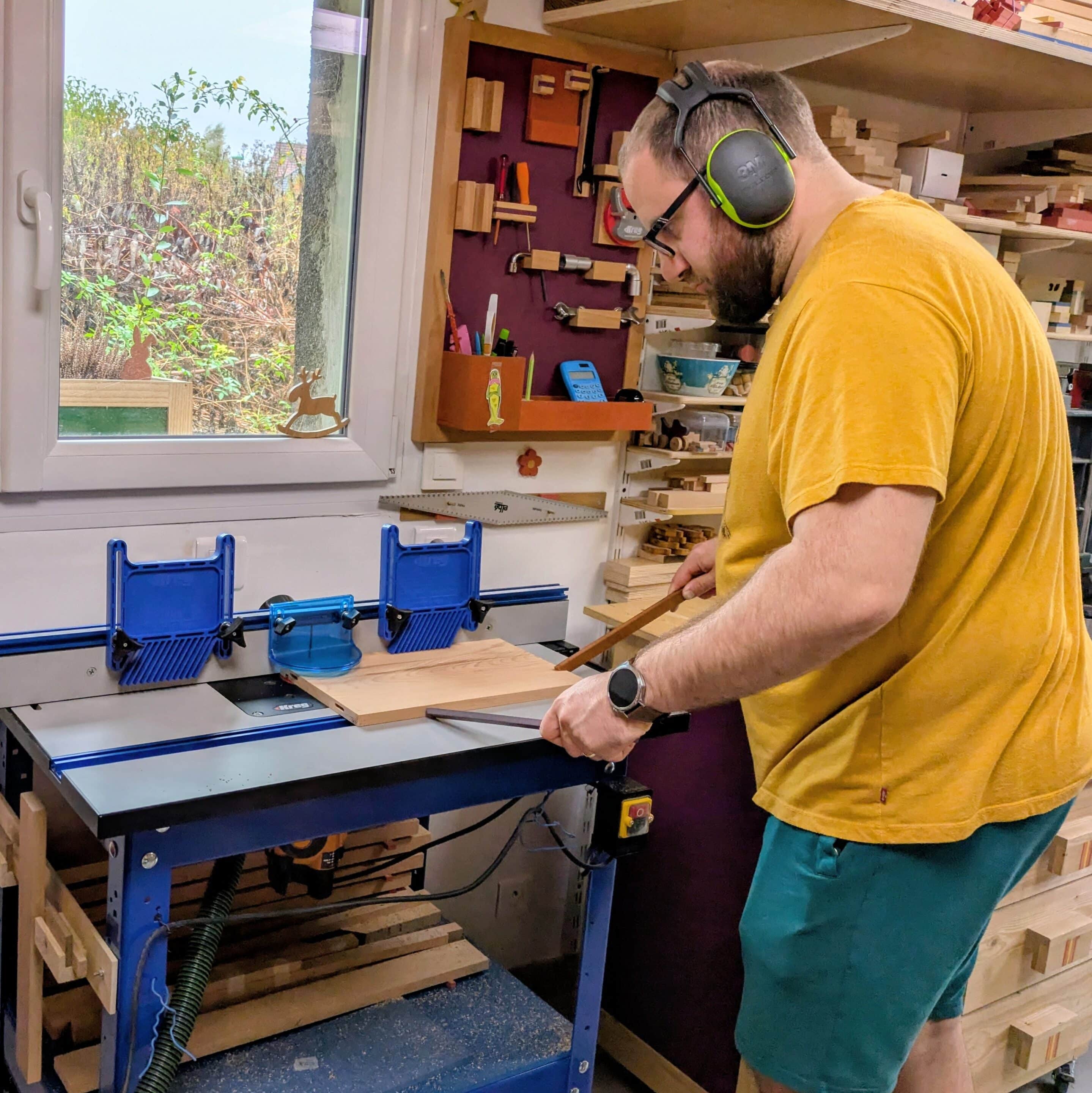 - Raboter et mettre à dimension toutes les pièces du meuble en hêtre