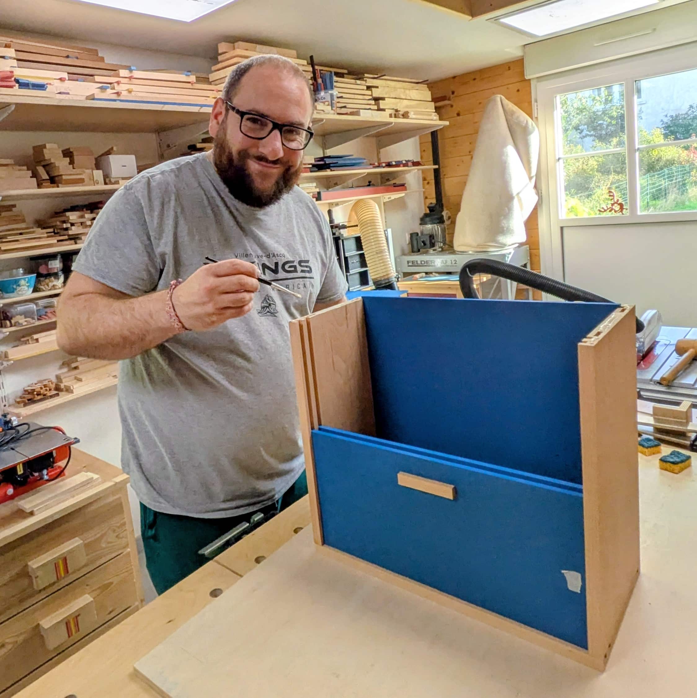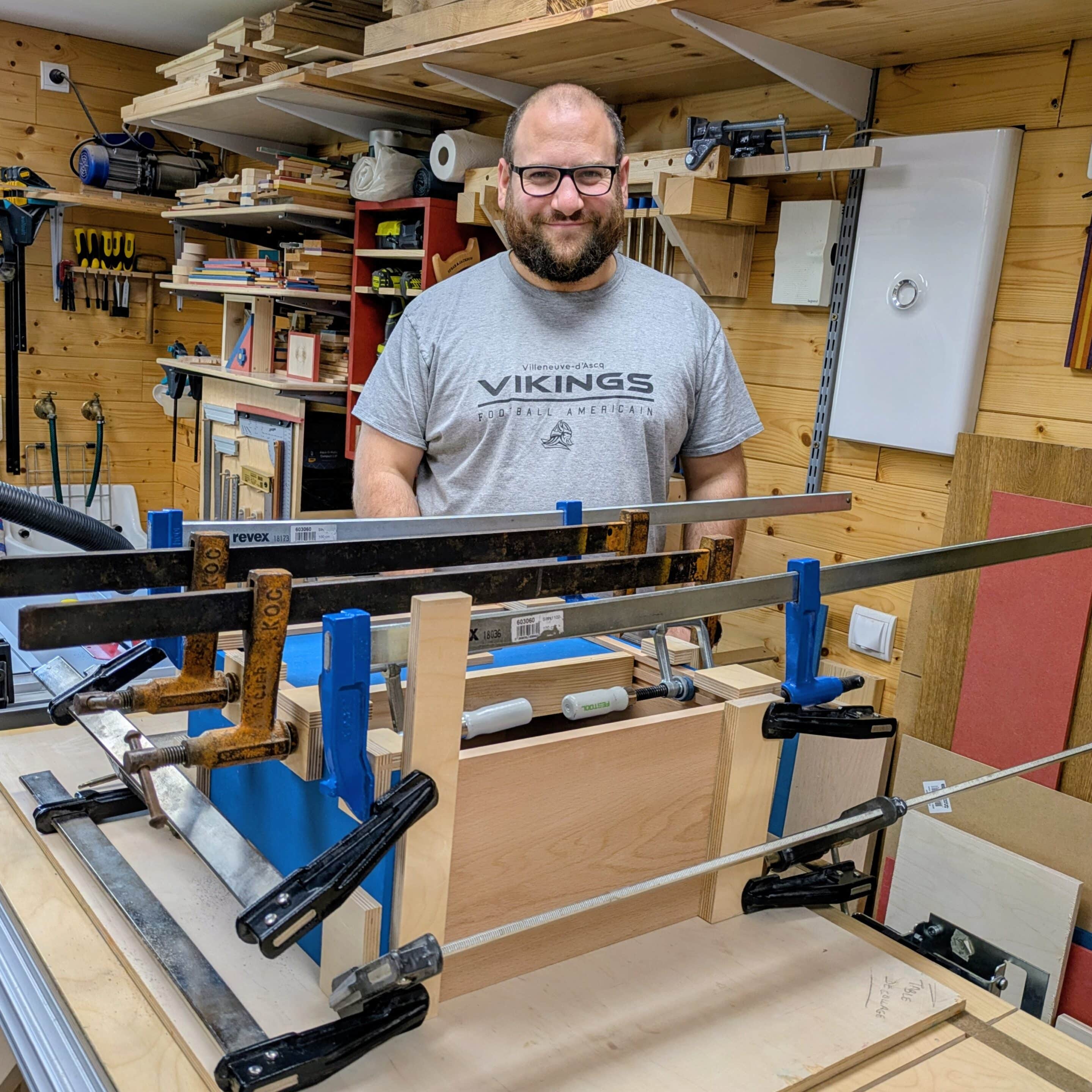 - Assembler la carcasse du meuble (utilisation de domino – système reproduisant le principe des tenons-mortaises en plus simple)